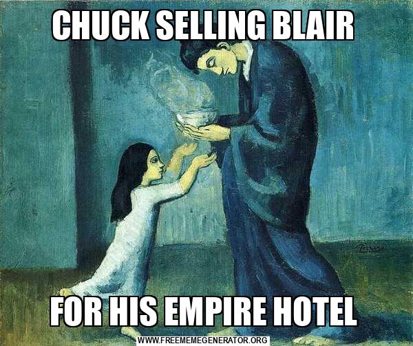 CHUCK SELLING BLAIR FOR HIS EMPIRE HOTEL
