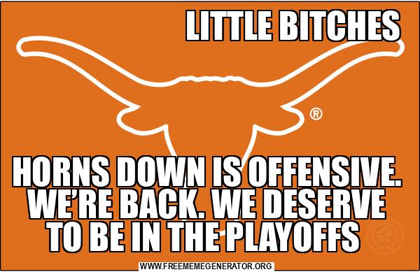 LITTLE BITCHES HORNS DOWN IS OFFENSIVE. WE’RE BACK. WE DESERVE TO BE IN THE PLAYOFFS