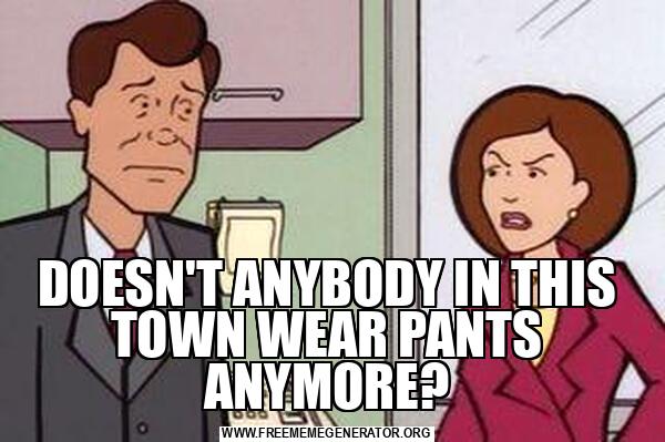 DOESN'T ANYBODY IN THIS TOWN WEAR PANTS ANYMORE?