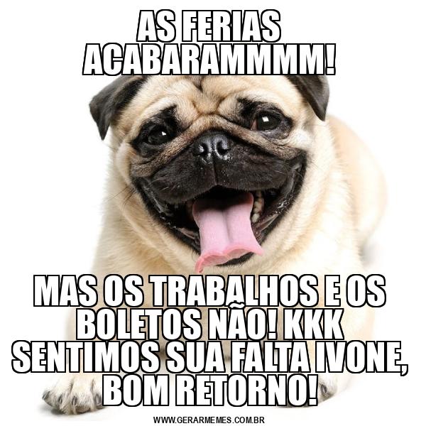 AS FERIAS ACABARAMMMM! MAS OS TRABALHOS E OS BOLETOS NÃO! KKK SENTIMOS SUA FALTA IVONE, BOM RETORNO!