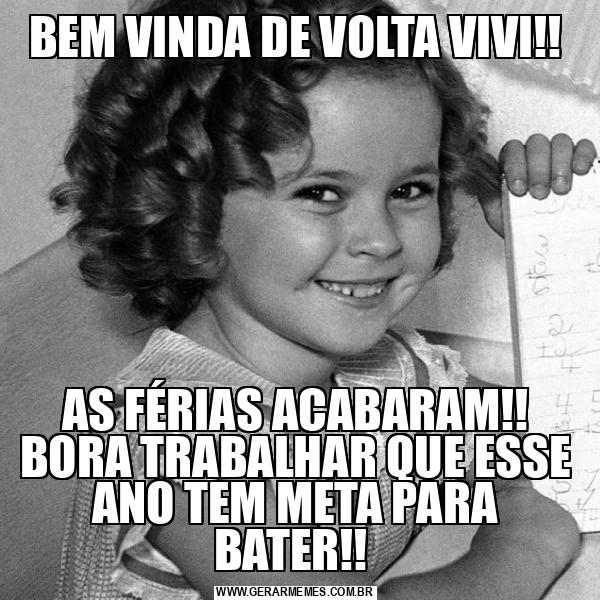 BEM VINDA DE VOLTA VIVI!! AS FÉRIAS ACABARAM!! BORA TRABALHAR QUE ESSE ANO TEM META PARA BATER!!