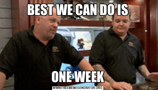 BEST WE CAN DO IS ONE WEEK