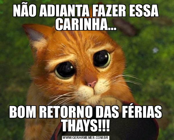 NÃO ADIANTA FAZER ESSA CARINHA... BOM RETORNO DAS FÉRIAS THAYS!!!