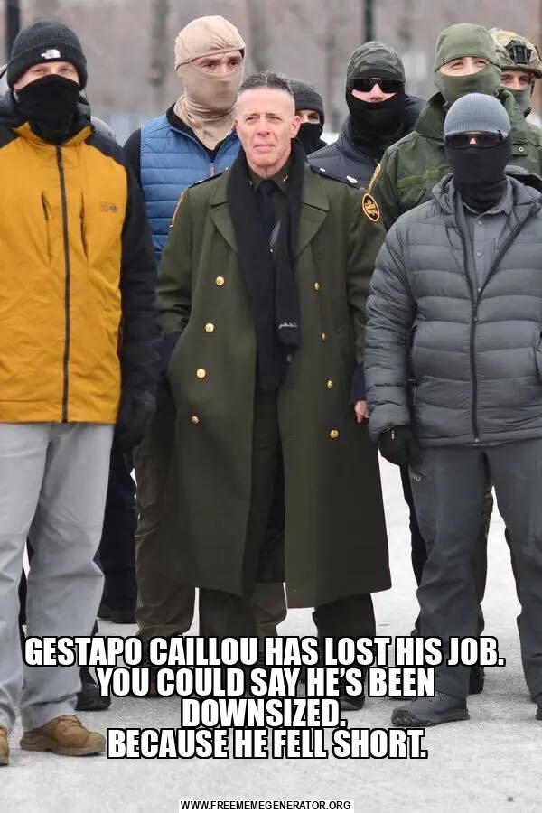 GESTAPO CAILLOU HAS LOST HIS JOB. YOU COULD SAY HE’S BEEN DOWNSIZED. BECAUSE HE FELL SHORT.