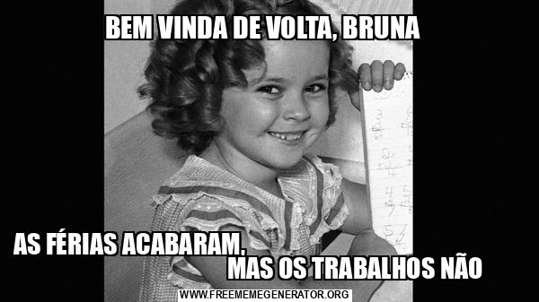 BEM VINDA DE VOLTA, BRUNA AS FÉRIAS ACABARAM, MAS OS TRABALHOS NÃO