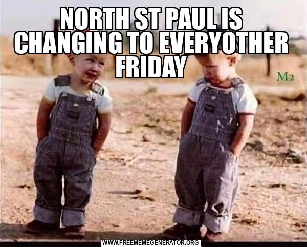 NORTH ST PAUL IS CHANGING TO EVERYOTHER FRIDAY