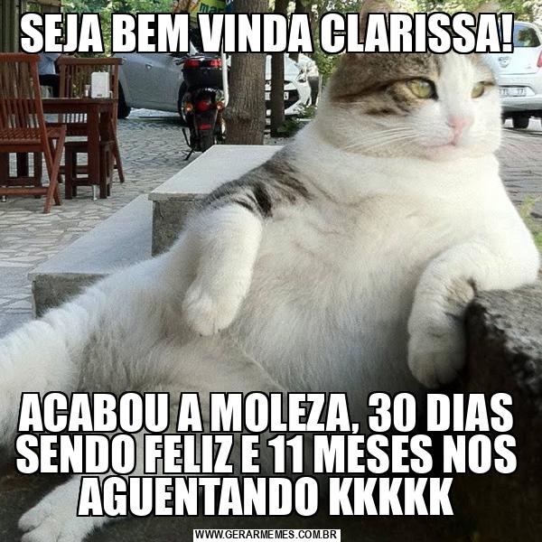 SEJA BEM VINDA CLARISSA! ACABOU A MOLEZA, 30 DIAS SENDO FELIZ E 11 MESES NOS AGUENTANDO KKKKK